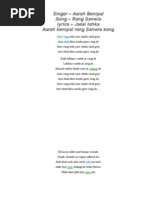 Aarsh Benipal Rang Sanwla Song Lyrics Donwload Mp3 - Gore rang wali yaar thoda chad gai.