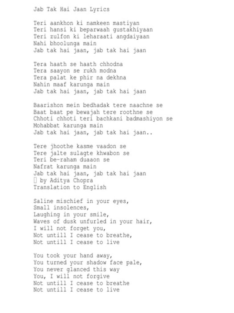 Jab Tak Hai Jaan Poem / Your memory life jab tak hai jaan. Jab Tak Hai Jaan Poem - Jab tak hai jaan starring: